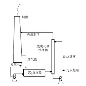 脱硝技术是利用现有烟气脱硫除尘工艺中原有设备作为脱硝反应器,将氧/臭氧混合气注入烟道,将NOX氧化成高价态且易溶于水的N2O3和N2O5,然后通过洗涤形成HNO3。