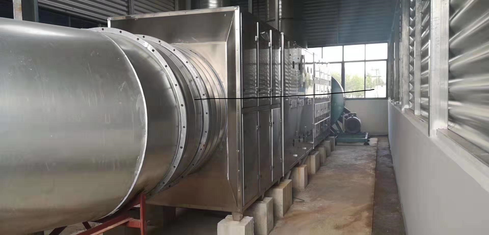 项目介绍: 公司名称:安徽某电气有限公司,主要经营电机以及控制设备、泵、阀、模具等。 项目名称:某电气喷漆房废气治理项目 废气分析:按照贵单位环评报告要求,同事结合现场实际情况以及业主的意见,该项目需处理的有机废气主要分为两部分;一部分是浸漆废气,第二部分是喷漆房废气(主要部分)。 处理工艺:收收集装置-支管路-风阀-主管道-预留空间-uv光氧催化设备-离心机-利用原烟囱或按要求接管改造。 处理风量:12000m³/h